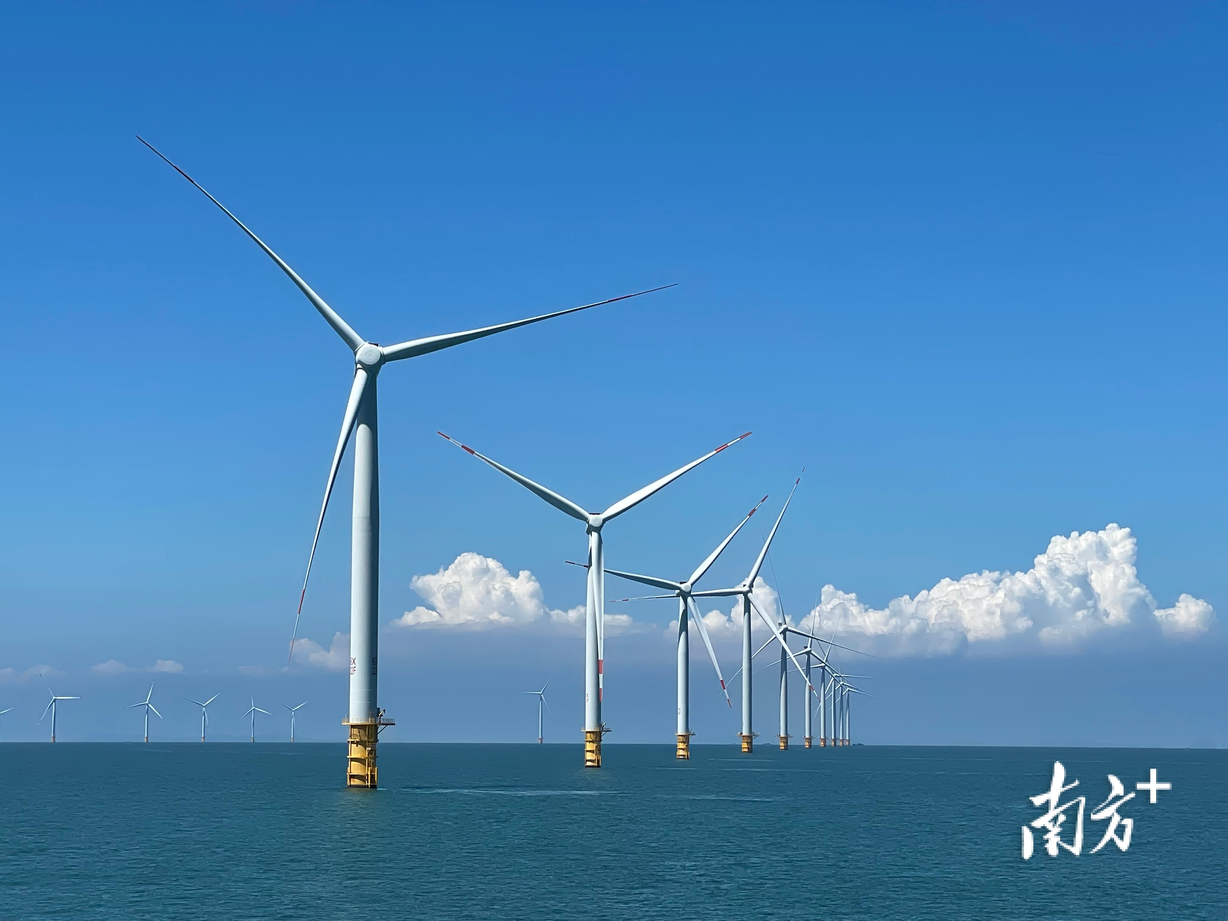 海上风力发电机不停旋转,向陆地输送绿色能源。